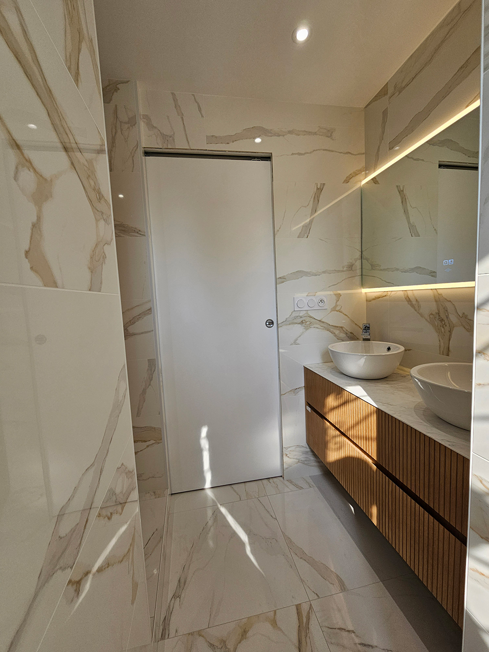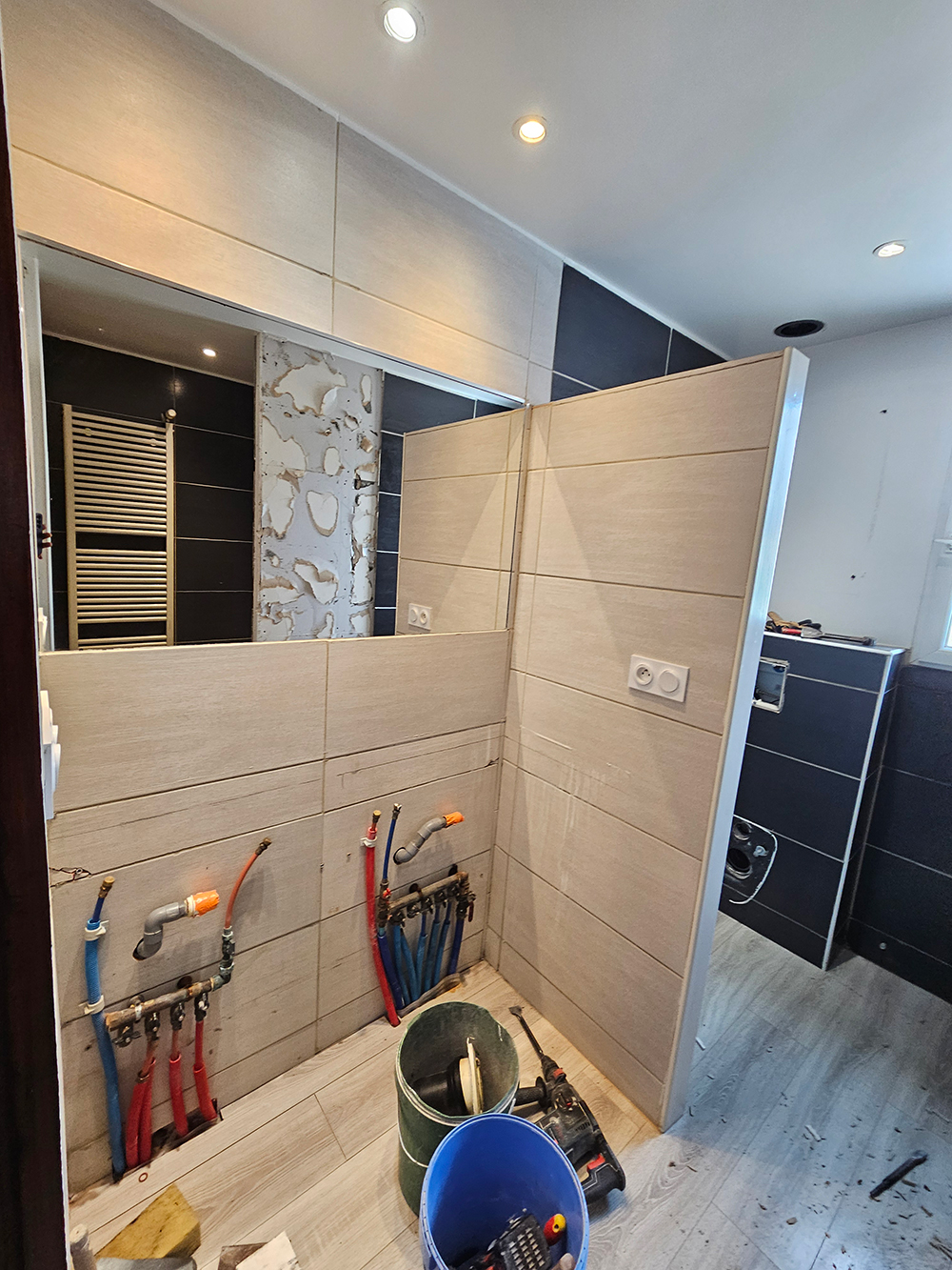 Rénovation par JC Rénovation d’un espace Bain en conservant sa configuration initiale, avec :