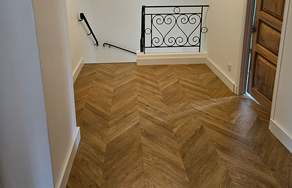 Pose d’un parquet à la française dans l’espace nuit et le couloir.